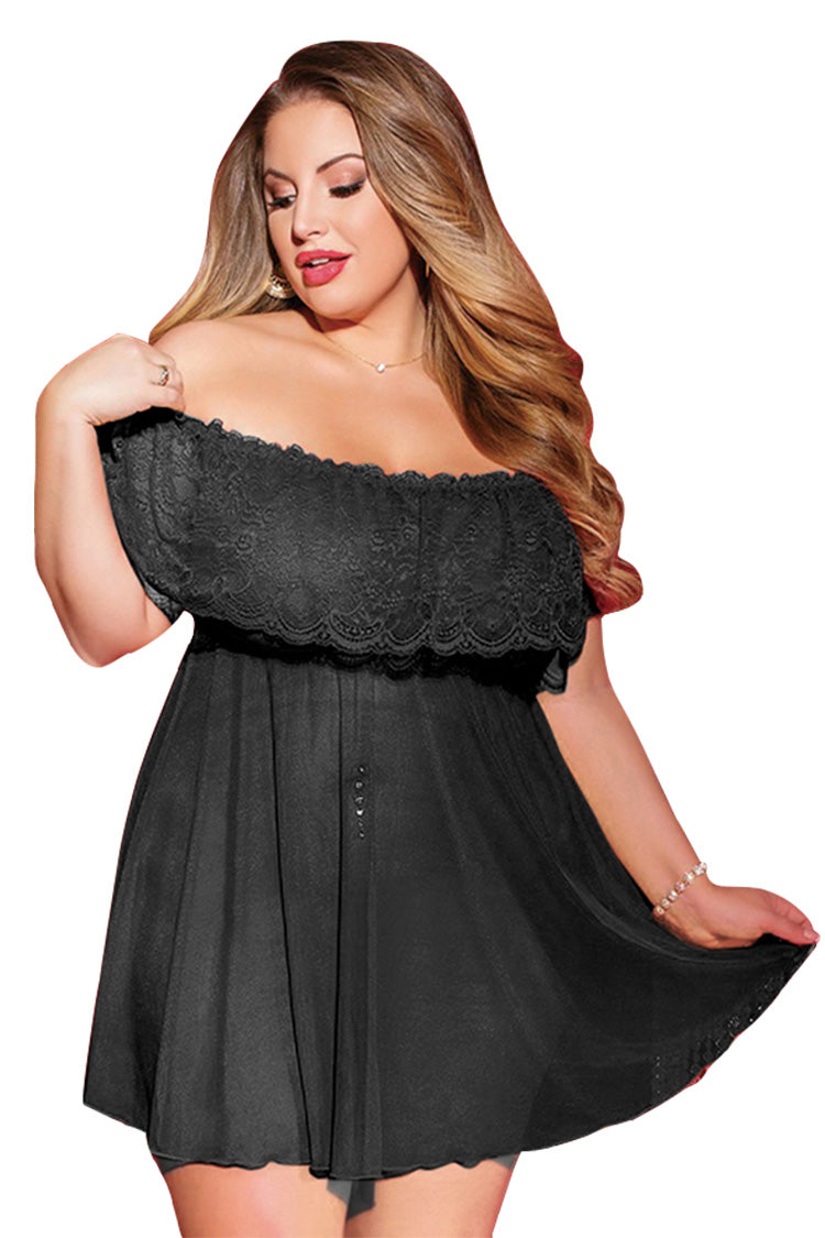 Plus Size Sexy Floral Lace Sheer Babydoll Set