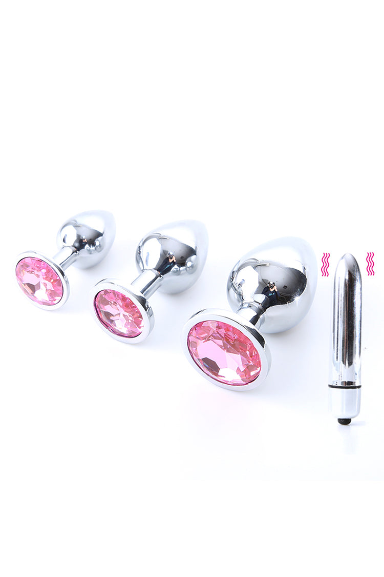 3pcs Crystal Anal Plug with Bullet Vibrator