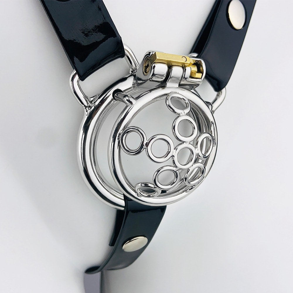 The chastity cage is a BDSM tool designed to physically restrict the wearer's sexual autonomy, enforcing orgasm denial or sexual control. It prevents masturbation or sexual activity without the dominant's permission. The dominant, as the keyholder, controls the wearer's sexual freedom both symbolically and practically. Since most devices can't be removed without a key, key control becomes central to power exchange. For remote play, the key may be stored in a third party device (e.g., lock box, seal, or mail package) to ensure the wearer remains under control. This practice combines physical restraint with psychological control, reinforcing obedience, trust, and power dynamics through denial and desire.