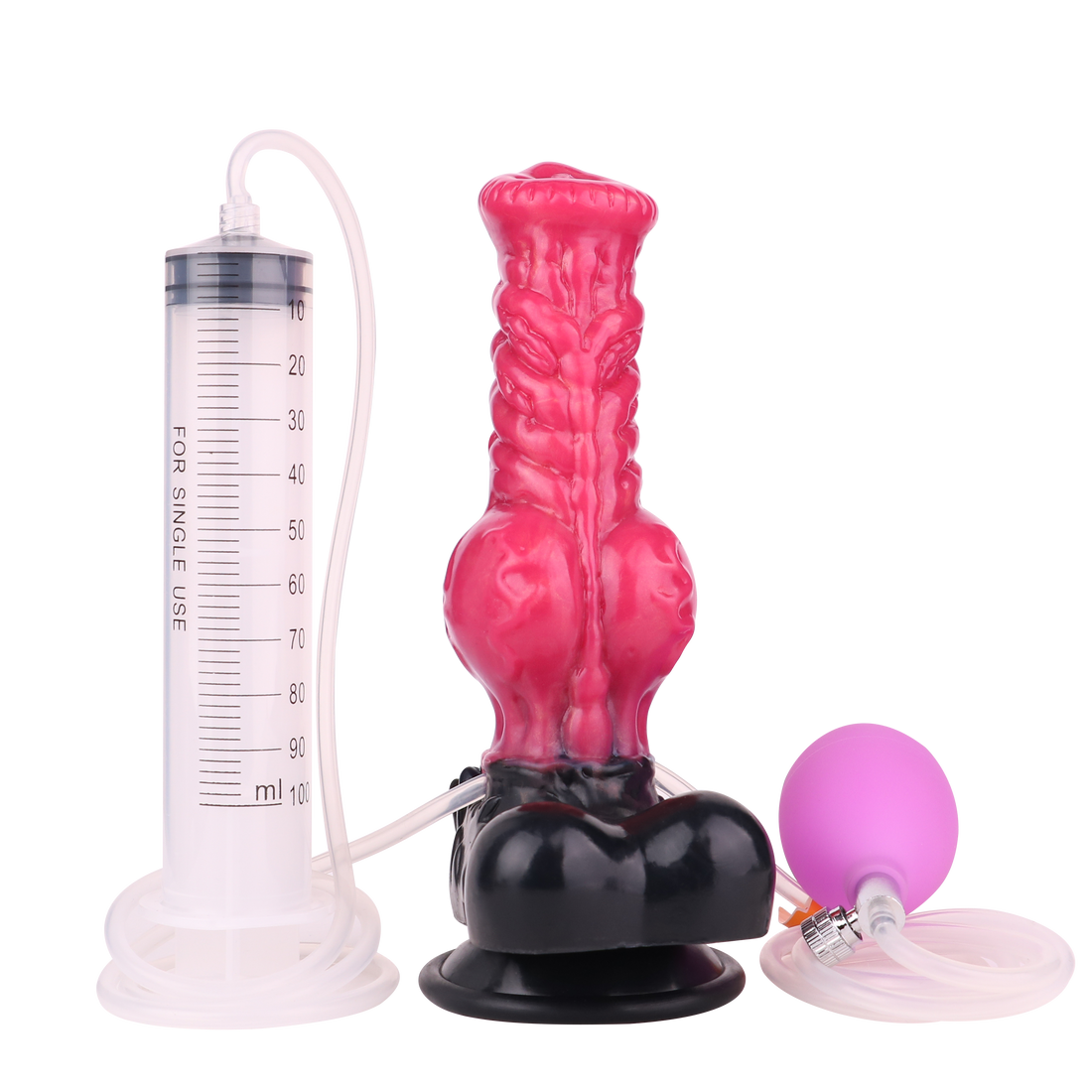 Monster knot inflatable ejaculating dildo