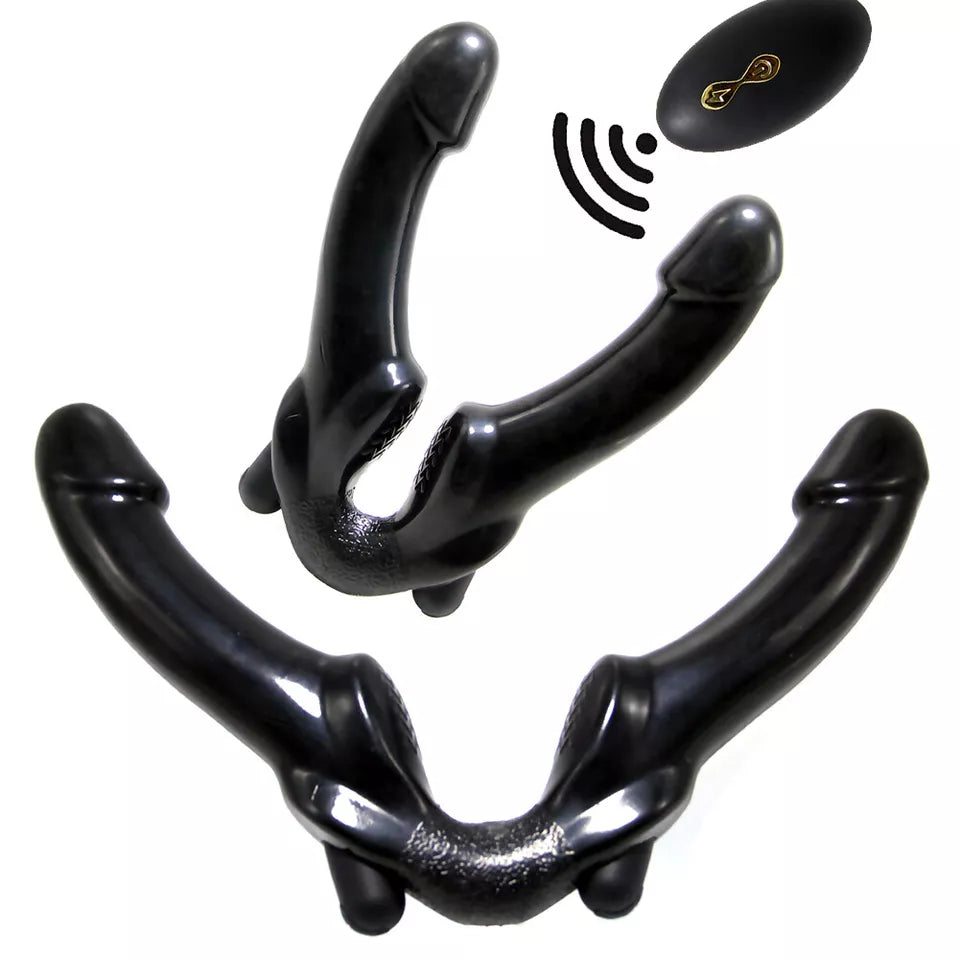 Remote Vibration Dual-Ended Black Strapless Dildo