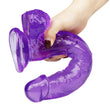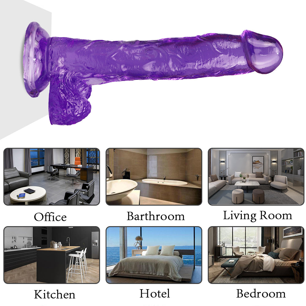 - Use this nearly 8-inch insertable purple dildo to reach climax quickly.