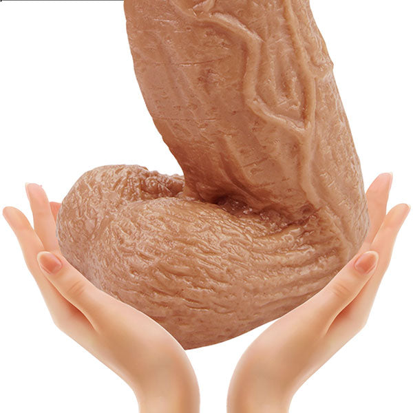 This giant 10-inch dildo is molded from a real penis and features perfect details: a lifelike glans, textured testicles, and a curved shaft with veins and blood vessels. When you use a realistic dildo, you can imagine having a thick boyfriend, whether it is a solo or a couple, you can use this 3-inch wide and thick dildo with a strap-on for play!