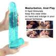 - Jelly Appearance: This green dildo has a translucent jelly-like appearance, with realistic texture designs. Whether it's the sculpted head or the raised veins, it provides you with an experience that mimics the sensation of a real penis.