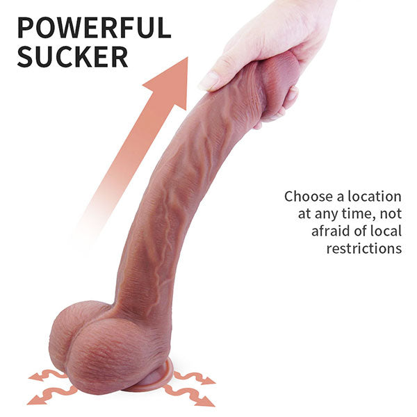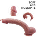The extra-large suction cup allows you to suck it in any place. This 14 inch Dildo is made of dual-density silicone material. Its epidermis can be twisted like human skin and has a certain elasticity. At the same time, it is very flexible and can be bent and rotated at any angle.