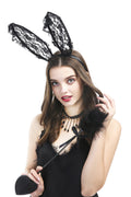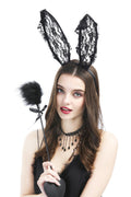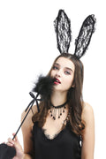 -Black floral lace rabbit ear hair hoop
