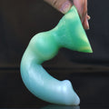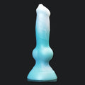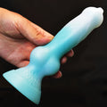 A gentle, dog dildo with a knot and two soothing gradients milky white to mint green or sea salt blue that look soft and relaxing on the eyes. The rounded, raised tip glides in smoothly without scratching, while a subtle ridge under the glans adds lifelike texture and extra friction for targeted teasing. A full, rounded knot delivers that satisfying “pop” as you pass it, amplifying fullness and confidence with every thrust. The strong suction base sticks to glass, tile, or the tub for hands free play and also serves as a safe depth stop for anal use. Made of high quality, waterproof silicone that feels plush yet supportive, it’s easy to clean with warm water and mild soap and pretty enough to display like a mini art piece.