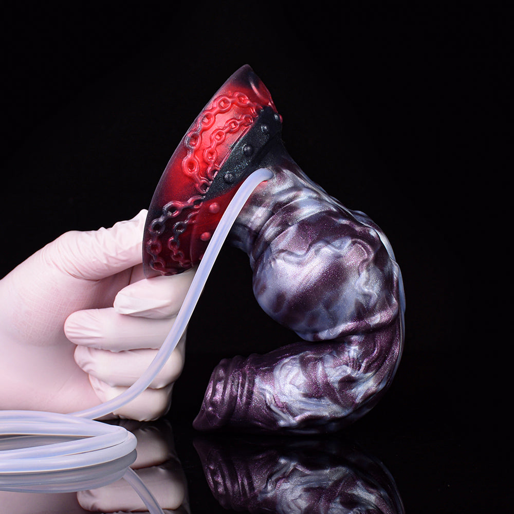 - This thick dragon dildo features a squirting function, designed to give you a more realistic non-human fantasy experience.