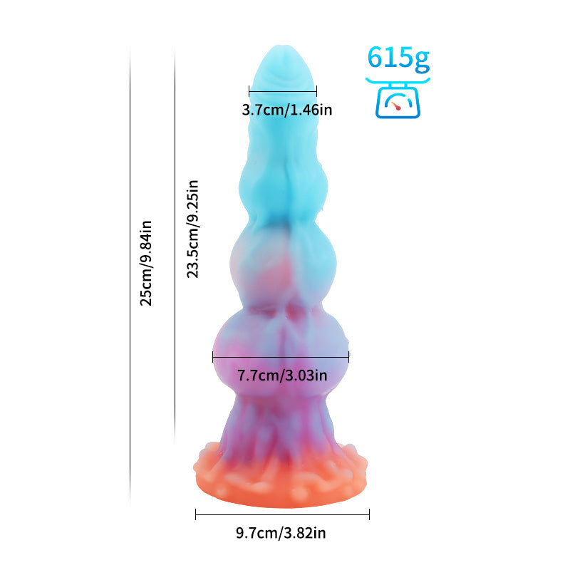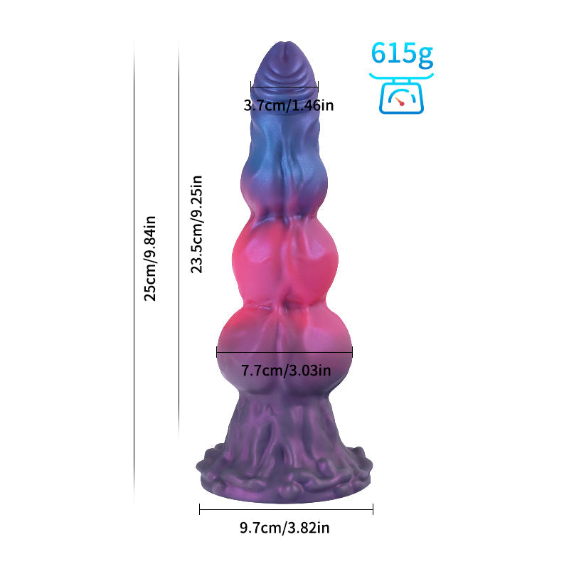 Suction cup base design: It also features a unique suction cup base, not a simple disc, but one shaped like melting, flowing liquid with irregular, undulating edges, giving it a distinctly "otherworldly" feel that perfectly complements its fantasy dildo color scheme – truly a work of art. Moreover, it can adhere to various smooth surfaces, allowing you to use it freely in different positions and angles, freeing up your hands.