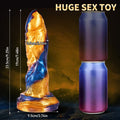 Fantasy Design: This 9 inch features a stunning blue-to-yellow gradient color. The small tip head allows for easier entry, followed by a satisfyingly thick midsection with a 2 inch diameter that delivers a deeply filling sensation.
