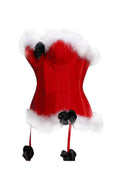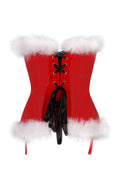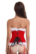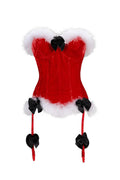 -White faux fur trim,cute black bowknots decorated red santa clause christmas corset