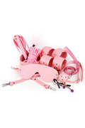 plush 8 piece set (Blindfold, Collars, Whip, Ball gag, Handcuffs, Anklecuffs, Nipple Clamps, Rope)
