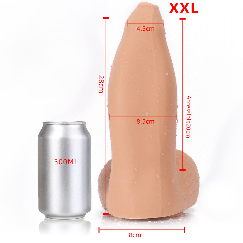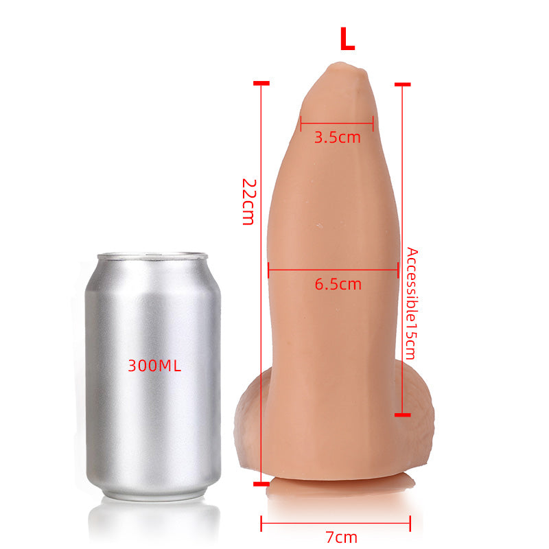 Inspired by the elephant, this dildo blends a sense of fullness and power with conical geometry. The tip features a blunt, tapered, small diameter for a more comfortable start. The midsection and base are stepped, thickened, and enhanced with a layered "foreskin" design, creating a gradual expansion path from shallow to deep, delivering a full yet controlled pressure gradient. The widened base provides stable support, making gripping and force management easier, preventing slippage when switching positions, and providing a clear safety margin. The one-piece molded design features clean lines and no unnecessary gaps, balancing aesthetics with ease of maintenance. It's perfect for both players pursuing a fantasy look and progressive intimate training.