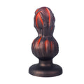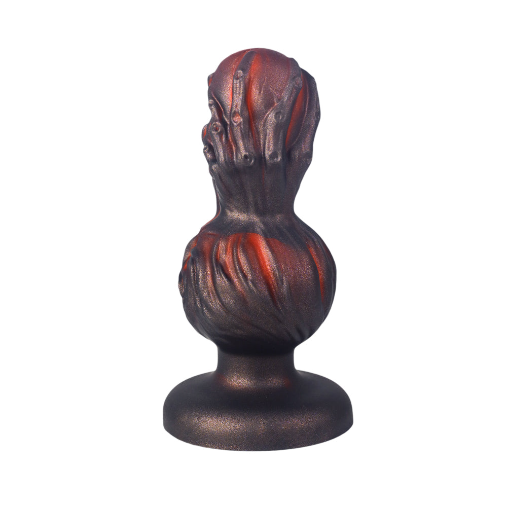 This black skull-shaped monster butt plug is crafted in a dark fantasy style, making it highly distinctive. Its surface features a lava-like texture: a dark gray-black base color accented with shimmering red patterns – mysterious and powerful, as if flames are trapped within the night.