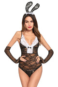 Black Lace Bunny girl Roleplay Complete Costume 4 Pcs Set