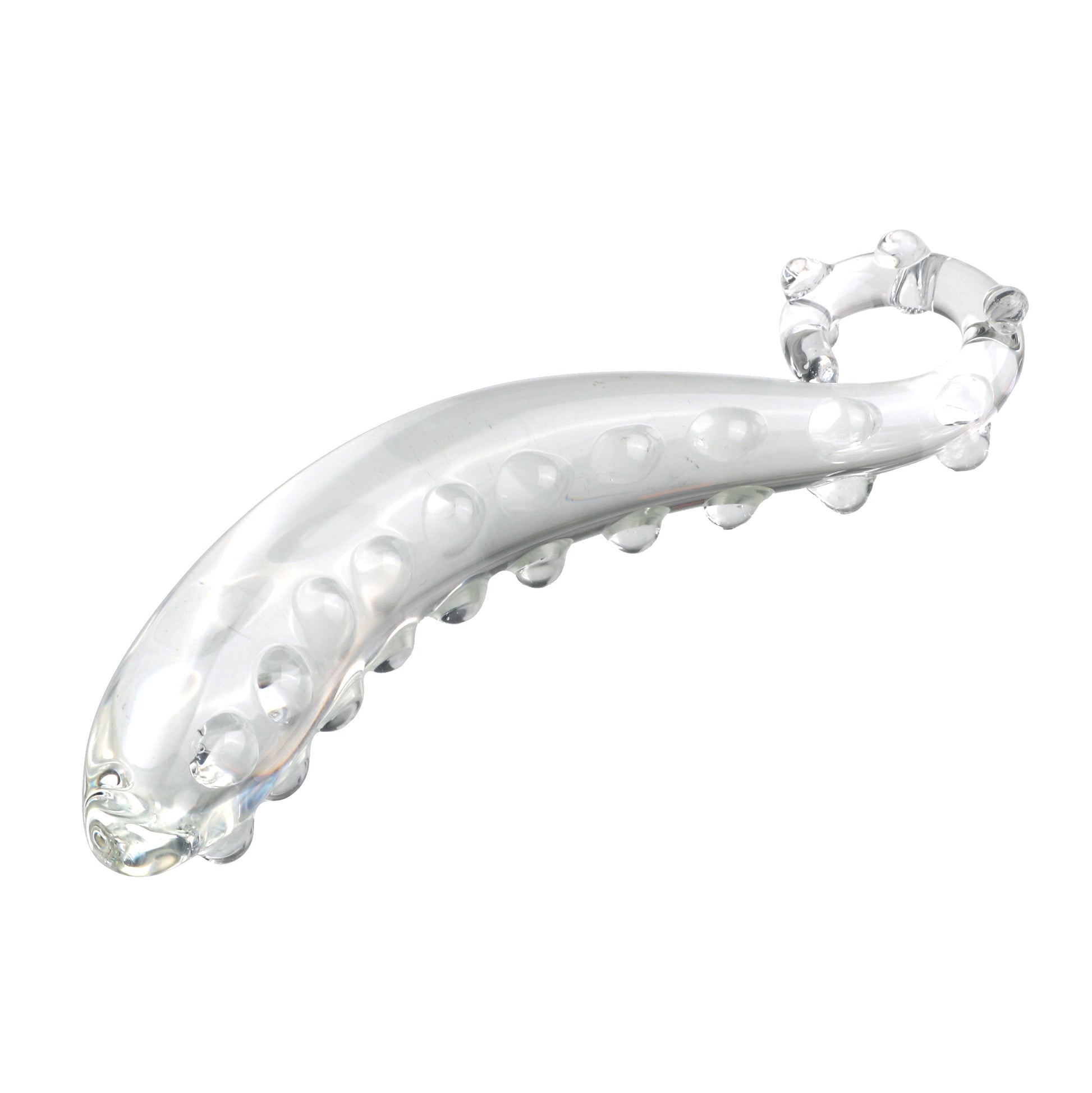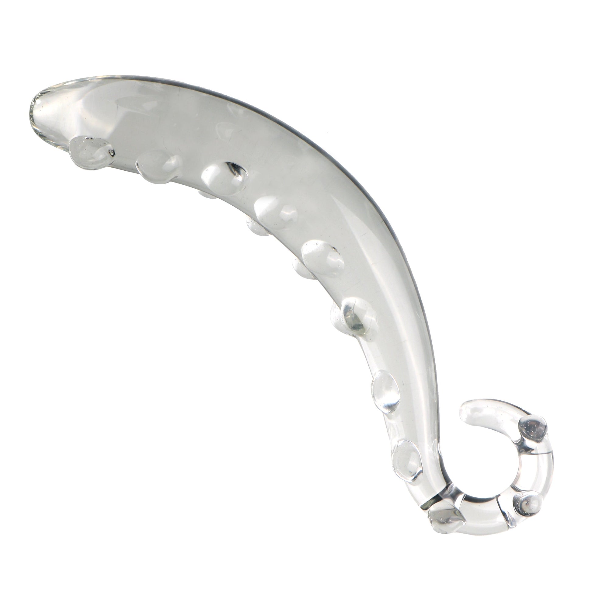 Unleash your fantasies with this beautifully crafted clear tentacle glass dildo. Designed with a unique tentacle-inspired shape, it features raised bumps along the smooth glass surface that deliver enhanced friction and deep stimulation with every thrust. The curved shaft is perfectly shaped to target your G-spot or P-spot, while the curled tail at the end offers extra control and teasing sensations. The detailed texture and striking design make it both visually captivating and physically satisfying.