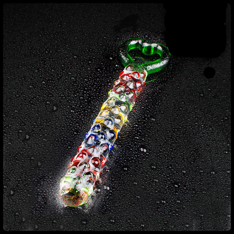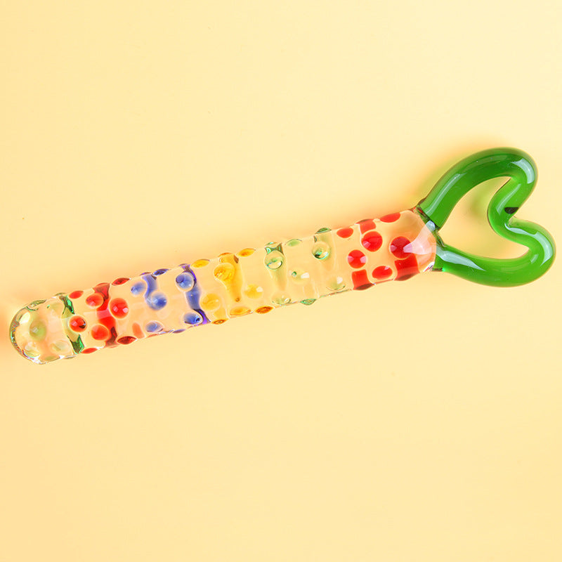 Colored Raised Pull Ring Anal Glass Dildo