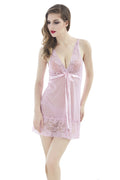 Deep Plunge Sheer Mesh Bowknot Charm Babydoll Lingerie