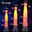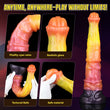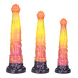 This fantasy horse penis dildo comes in three different sizes. All are large. The exterior features a rich, pumpkin-themed Halloween color palette, creating a novel fantasy element.