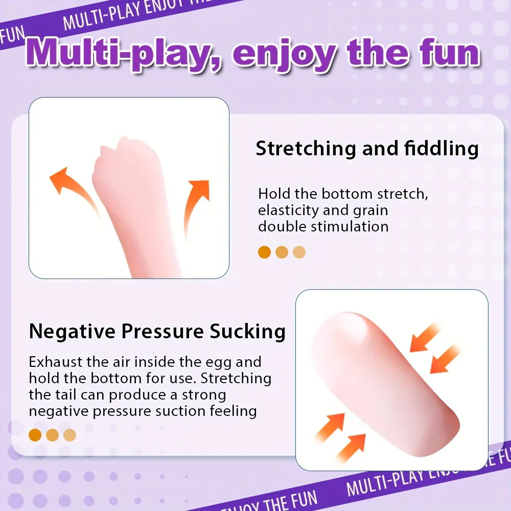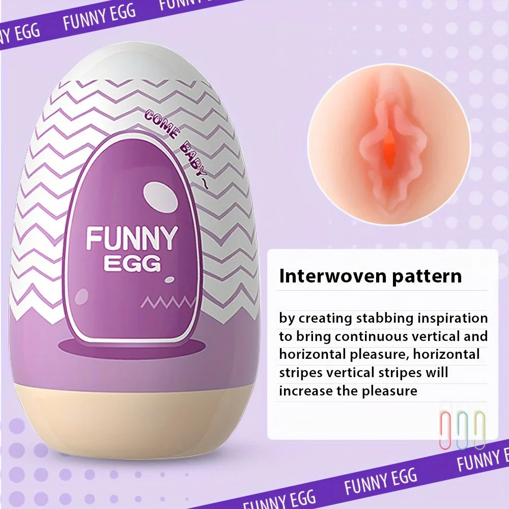 • Realistic 3D Vagina: This vibrator features a 3D textured channel inside, composed of bumps and grooves, that fully envelops the penis, providing 360° stimulation. Each use of this 3D realistic egg-shaped vibrator delivers a different pleasure from tip to base, more stimulating than ordinary smooth vibrators.