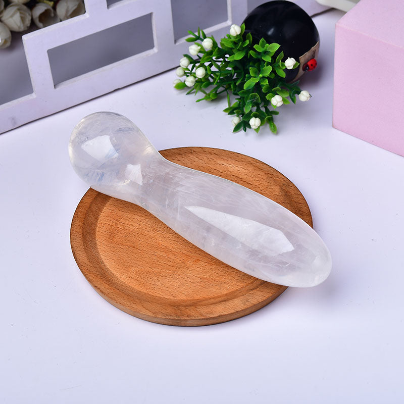 - This semi-transparent white crystal dildo features an upward-curved, thick spherical tip, providing a satisfying response when you're craving some stimulation.