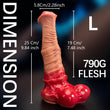 The Flared Horse Animal Big Dildo is a classic fantasy animal dildo. Its flesh-colored, textured shaft and bright red base and testicles create a striking visual impact. Made entirely of high-quality, body-safe silicone, it's flexible and resilient, providing a skin-friendly feel. The realistic texture and circular folds on the shaft create a layered friction, while the rounded tip ensures smooth insertion (for both vaginal and anal sex). The suction cup base is stable and can be placed on a flat surface for hands-free play. This anal dildo is available in six custom sizes, ranging from S to XXXL, making it perfect for beginners and advanced players.