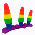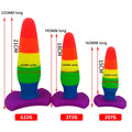 This is a rainbow anal plug. Made of liquid silicone, it features a classic pointed anal plug design with a flat, magnetic end for added security and a T-shaped design to prevent loss. This anal plug kit is specifically designed for the anus, and the rainbow design is a favorite among those who appreciate a more glamorous look and those with a homosexual aesthetic.