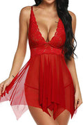 Deep V Neck Lace Soft Cup Babydoll Set