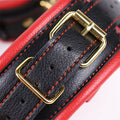 This leather BDSM collar set with nipple clamps is made from premium soft black and red leather with a metal chain, creating a truly elegant palace-style look. The leather is padded with foam for exceptional comfort and long-lasting wear. The set includes an adjustable BDSM collar with two built-in BDSM nipple clamps, two BDSM handcuffs, and a leash. It's perfect for bondage enthusiasts and is also suitable for beginners. It can also be used for role-play or as a decorative accessory.