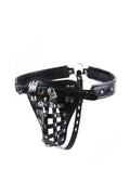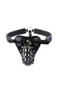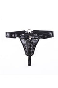Male Studs Buckle Pouch Thong with Lock Cage