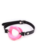 -O-ring style mouth gag with silicone mouthpiece for comfortable wear