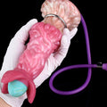 This pink alien dildo contains eggs to help you explore your egg laying fantasies! It's a favorite color for teenage girls and is designed to fit into a regular 8-inch dildo. It's inflatable and can be used with an air pump!