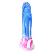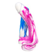 Want to massage two areas simultaneously for a more stimulating sex experience? This double penetration dildo, featuring a blue/pink and white marble pattern, has two separate bodies one thicker and one thinner to satisfy you.