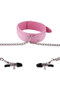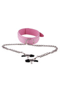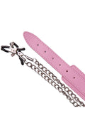 Pink Leather BDSM Collar with Nipple Clamps Set