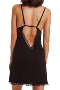 Plunge Neckline Satin Tie Black and Lace Chemise Black Red