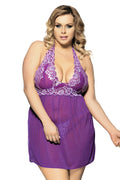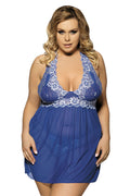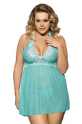 Plus Size Floral Lace Halter Neck Babydoll