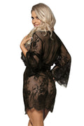 -Sexy sheer see through floral lace mesh lingerie robe, satin waist band tied