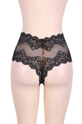 -Floral lace trim sheer see through panties
