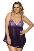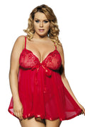 Plus Size Sexy Sheer Lace Babydoll Set