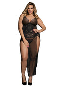 Plus Size Sheer Floral Lace Side Slit Maxi Nightdress