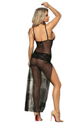 -Triangle cup,sheer floral lace lingerie nightdress,adjustable spaghetti strap,side slit see through long maxi dress highlighting your alluring boobs and beautiful leg curve