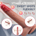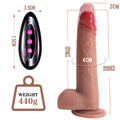 This realistic dildo, with a remote control and powerful vibration function, allows you to swing happily, with up to 10 vibration modes, 3 telescopic modes, intelligent heating, and solo experience! Long press the host power button to start the mysterious journey