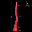Extra Long Size: This red octopus tentacle dildo comes in three different sizes, ranging from 17.7 inches to 21.6 inches in length. The maximum diameter at the tip is under 1 inch, while the midsection expands to a maximum of 2 inches — ideal for those who enjoy deep penetration without excessive girth.