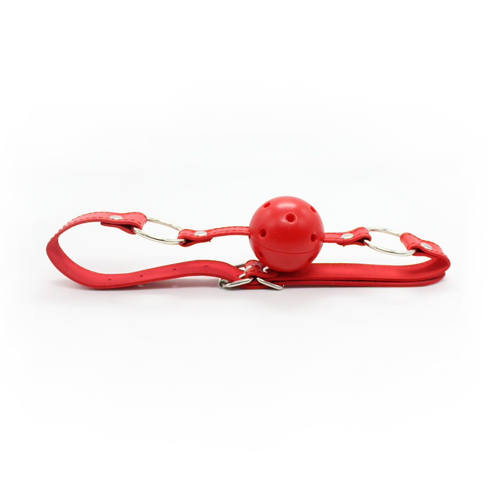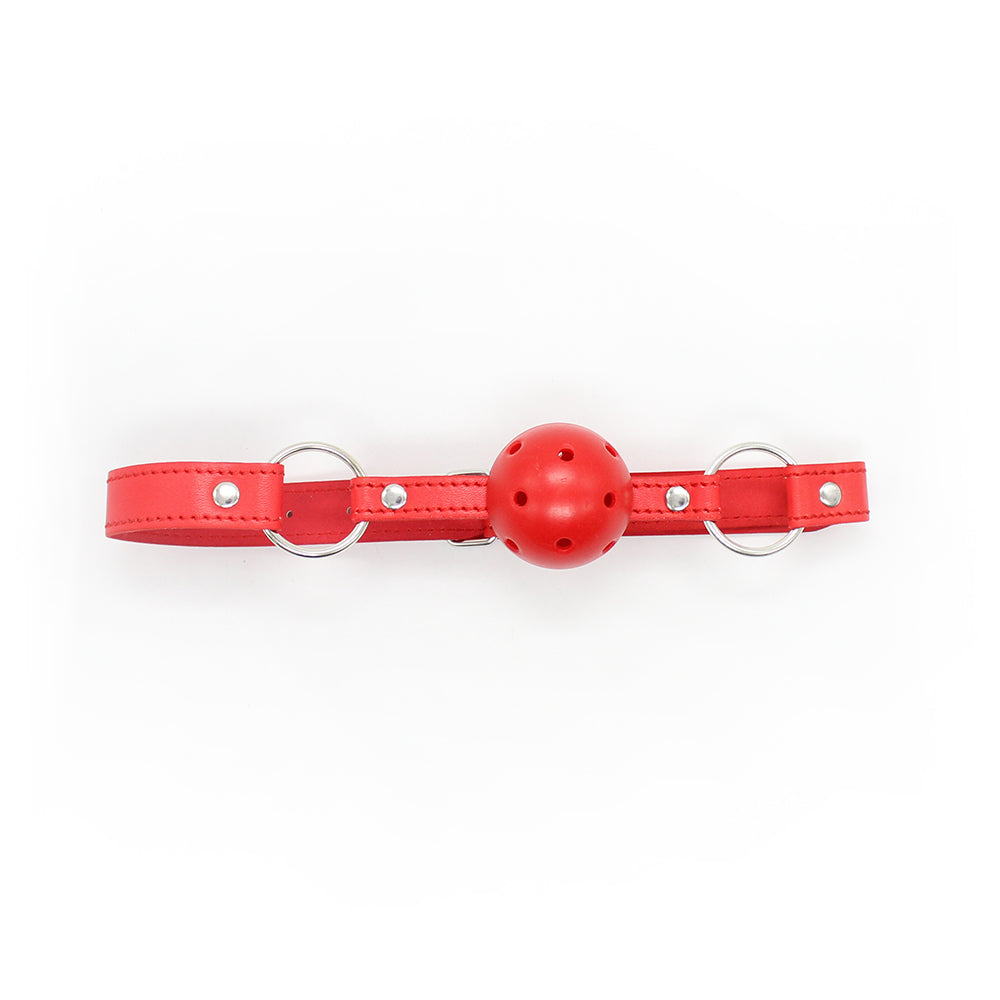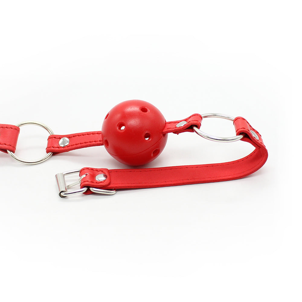 Red Leather Adjustable Mouth BDSM Ball Gag