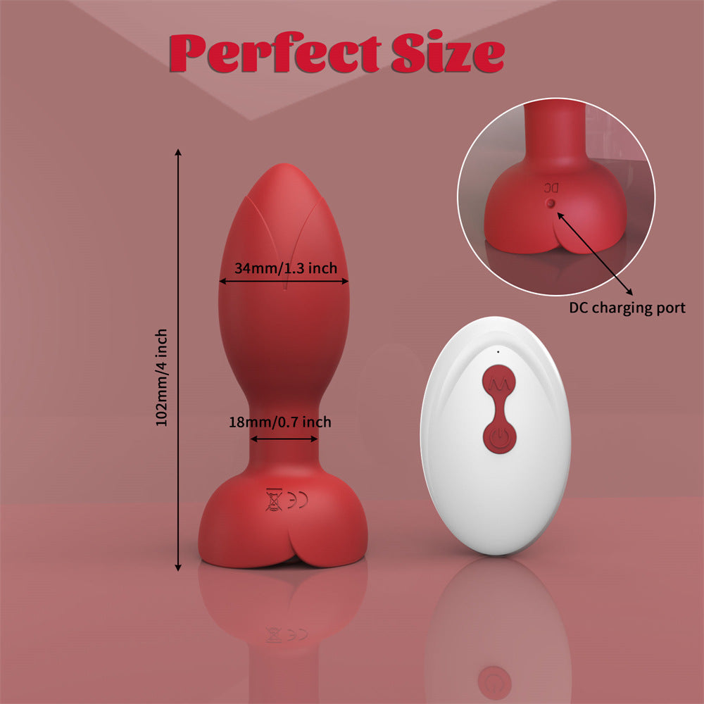 This is a rose-themed vibrating butt plug featuring a classic tapered plug design at the front and a beautifully sculpted rose at the base. The entire toy is made from medical-grade silicone, with a velvety-soft touch that resists dust and lint. It is powered by a strong motor and offers 10 vibration modes. The center of the rose at the tail serves as the power button—simply press and hold to turn it on. It also supports multiple control options, including remote control and APP control, allowing you to enjoy more hands-free and interactive pleasure.