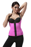 Plus Size Neoprene Waist Trainer with Zipper and Hooks 6 Steel Boned Rose Red