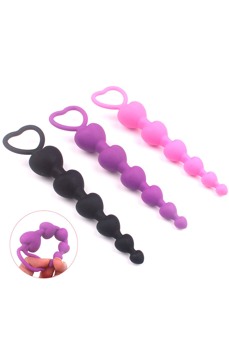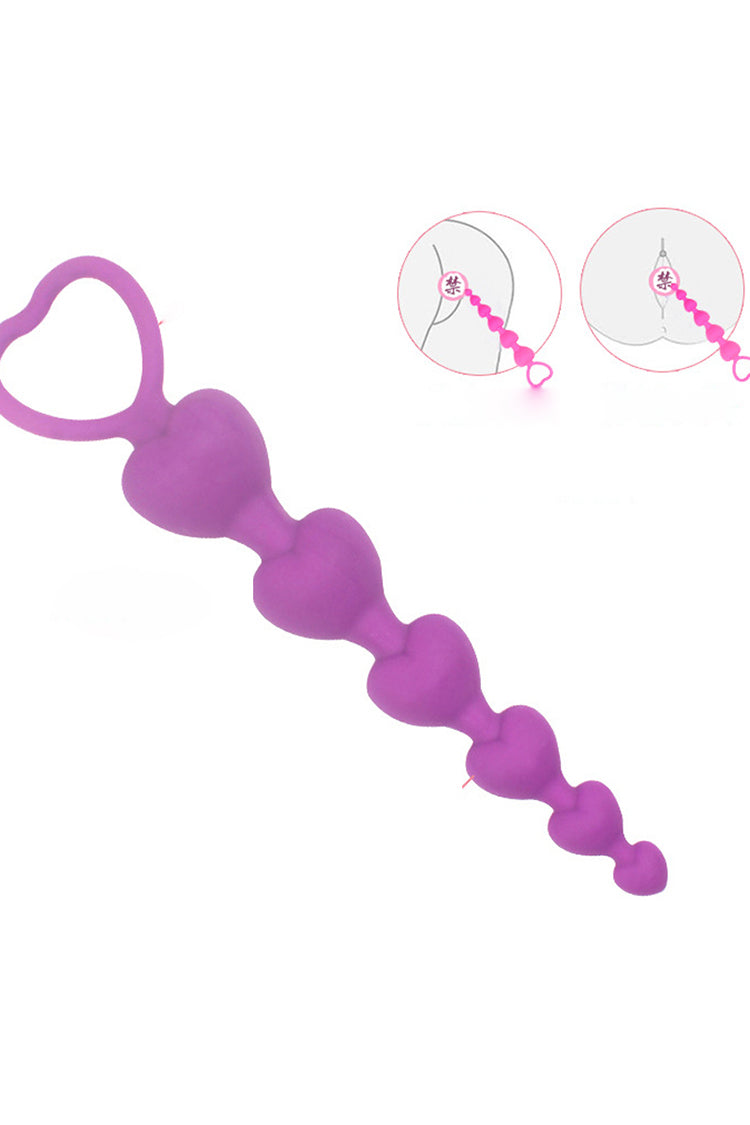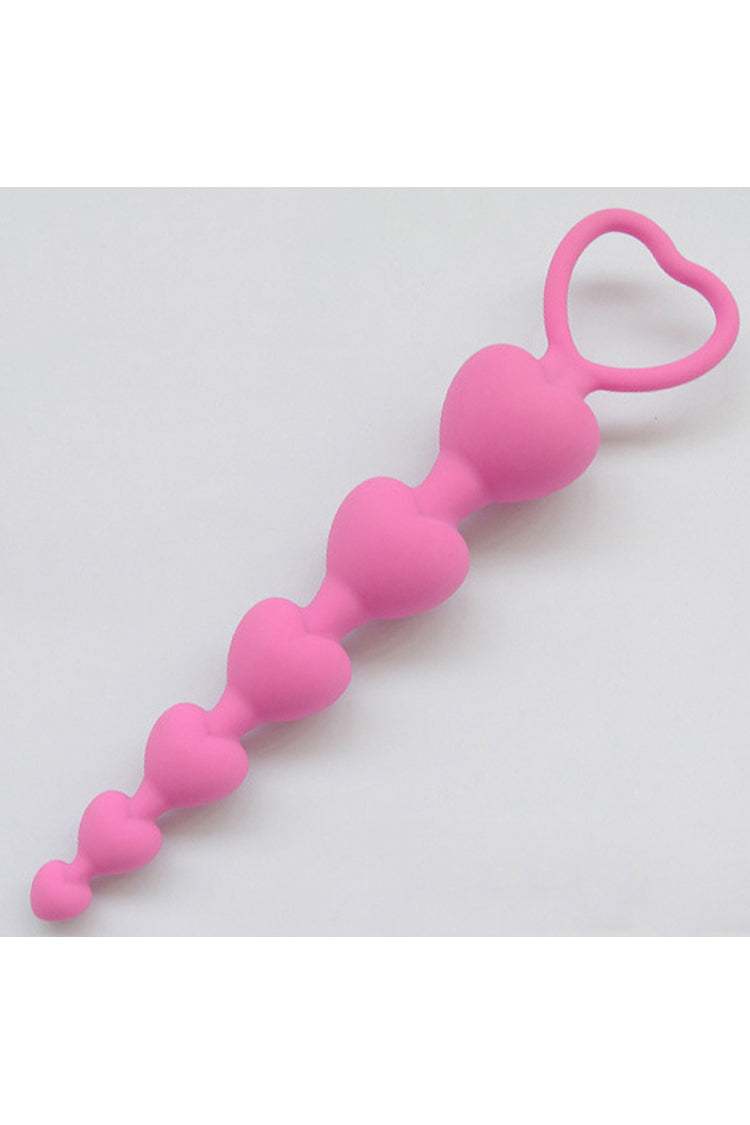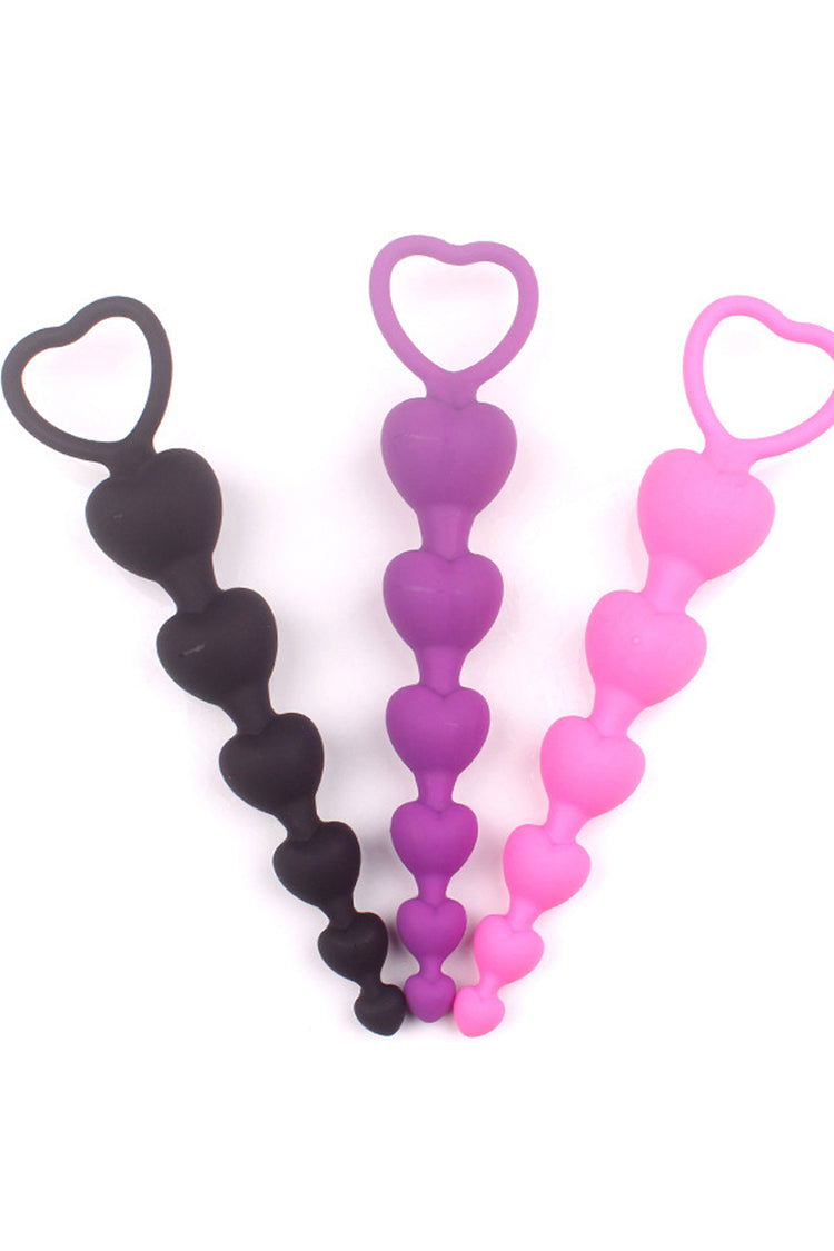 Silicone Long Heart Shape Beads Anal Plug Butt