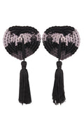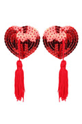 Heart Shaped Sequin Nipple Pasties with Tassel Red Black