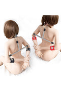 -Cuffs secure wrists behind the wearer's back to expose their chest