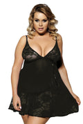 Plus Size Sexy Floral Lace Sheer Babydoll Set
